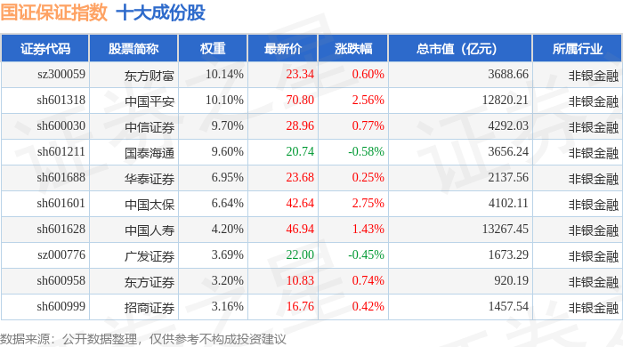 证券之星消息,12月25日,国证保证(399420)指数报收于1596.99点,涨0.85%,成交296.93亿元,换手率0.62%。当日该指数成份股中,上涨的有26家,中国太保以2.75%的涨幅领涨,下跌的有4家,国泰海通以0.58%的跌幅领跌。