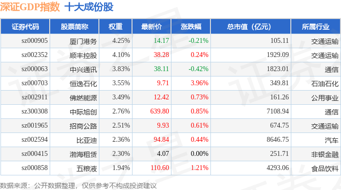 深证GDP(399648)指数十大成份股详情如下: