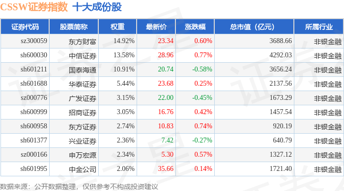 近10日内CSSW证券(399707)指数成份股做了调整,新纳入了1只股票。