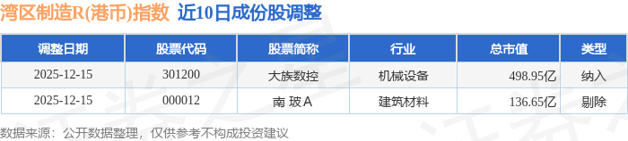 近10日内湾区制造R(港币)(480010)指数成份股做了调整,新纳入了1只股票,剔除了1只股票。