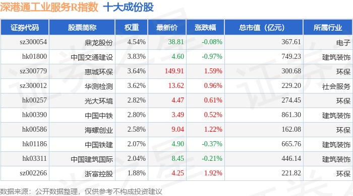 深港通工业服务R(483055)指数十大成份股详情如下: