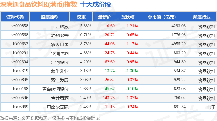 深港通食品饮料R(港币)(483066)指数十大成份股详情如下: