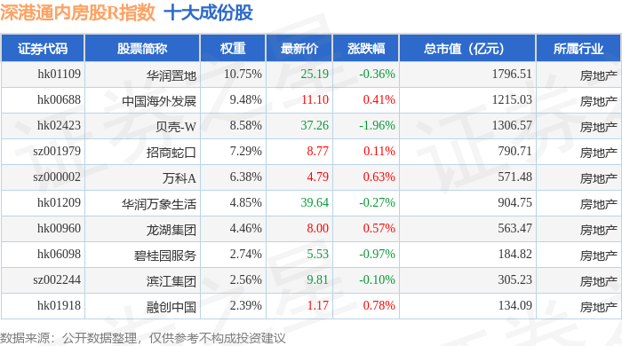 近10日内深港通内房股R(483083)指数成份股做了调整,剔除了2只股票。