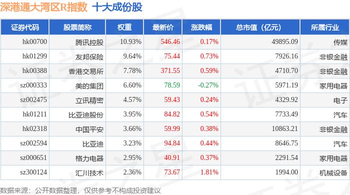 深港通大湾区R(483089)指数十大成份股详情如下:
