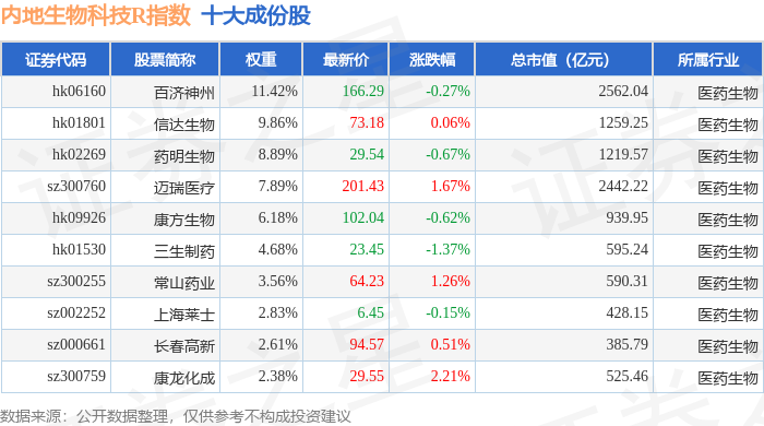 近10日内内地生物科技R(483101)指数成份股做了调整,剔除了4只股票。