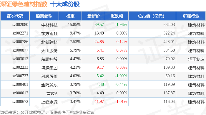 近10日内深证绿色建材(970077)指数成份股做了调整,新纳入了5只股票,剔除了5只股票。