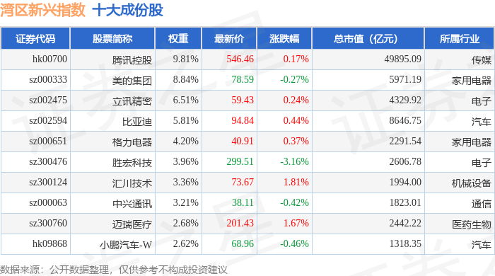 证券之星消息,12月25日,湾区新兴(980007)指数报收于4117.19点,涨0.15%,成交1104.81亿元,换手率1.69%。当日该指数成份股中,上涨的有56家,信维通信以13.35%的涨幅领涨,下跌的有42家,胜宏科技以3.16%的跌幅领跌。