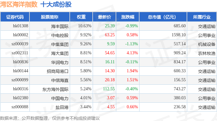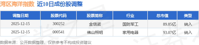 近10日内湾区海洋(980019)指数成份股做了调整,新纳入了2只股票。