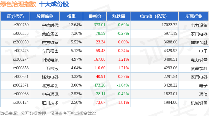 资金流向方面,绿色治理(980058)指数成份股当日主力资金净流出合计10.37亿元,游资资金净流出合计5.87亿元,散户资金净流入合计16.24亿元。成份股资金流向详情见下表:
