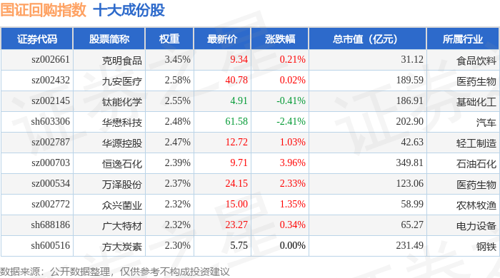 近10日内国证回购(980063)指数成份股做了调整,新纳入了22只股票,剔除了22只股票。