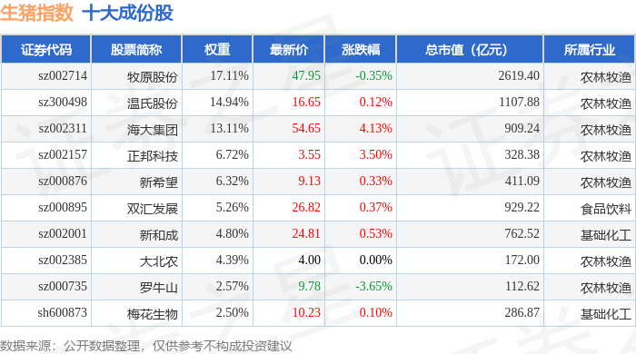 近10日内生猪指数(980073)成份股做了调整,新纳入了4只股票,剔除了1只股票。