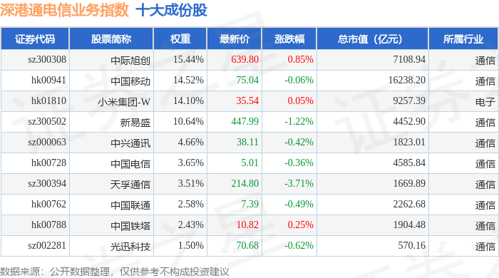 深港通电信业务(983029)指数十大成份股详情如下: