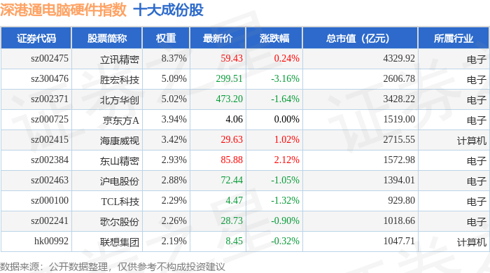 深港通电脑硬件(983043)指数十大成份股详情如下: