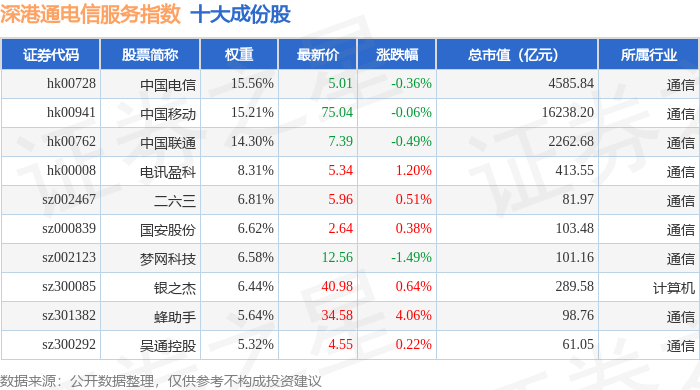 近10日内深港通电信服务(983057)指数成份股做了调整,新纳入了2只股票。