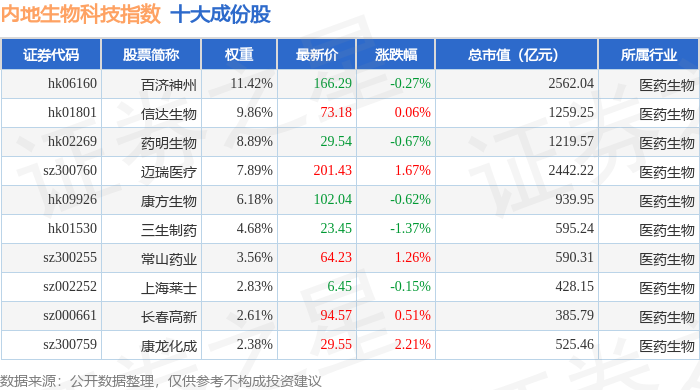 近10日内内地生物科技(983101)指数成份股做了调整,剔除了4只股票。