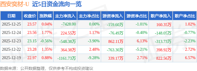 证券之星消息,截至2025年12月25日收盘,西安奕材(688783)报收于23.57元,上涨0.04%,换手率4.08%,成交量6.72万手,成交额1.58亿元。