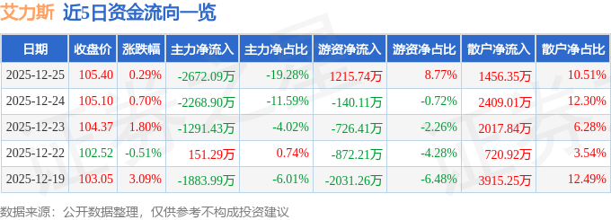 12月25日的资金流向数据方面,主力资金净流出2672.09万元,占总成交额19.28%,游资资金净流入1215.74万元,占总成交额8.77%,散户资金净流入1456.35万元,占总成交额10.51%。