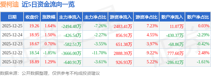 证券之星消息,截至2025年12月25日收盘,爱柯迪(600933)报收于19.26元,上涨1.64%,换手率1.83%,成交量17.92万手,成交额3.44亿元。