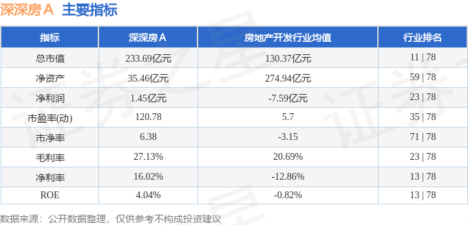 该股主要指标及行业内排名如下: