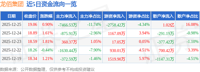 证券之星消息,截至2025年12月25日收盘,龙佰集团(002601)报收于19.06元,上涨0.9%,换手率1.66%,成交量33.03万手,成交额6.36亿元。
