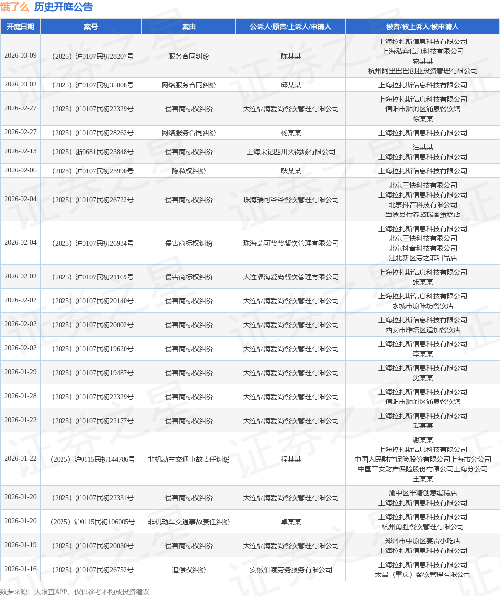 证券之星消息,根据天眼查APP显示,近日公布了一则上海拉扎斯信息科技有限公司作为被告/被上诉人的开庭公告,详细内容如下: