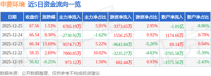 证券之星消息,截至2025年12月25日收盘,申菱环境(301018)报收于67.56元,上涨1.53%,换手率8.55%,成交量17.01万手,成交额11.45亿元。