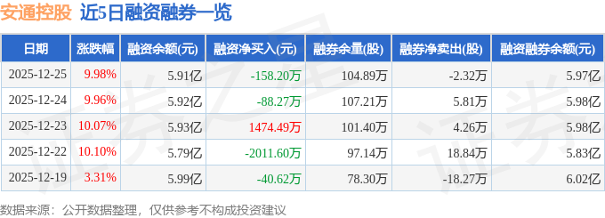 证券之星消息,截至2025年12月25日收盘,安通控股(600179)报收于5.95元,上涨9.98%,已连续涨停4天,换手率4.3%,成交量166.2万手,成交额9.68亿元。
