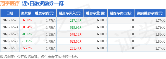 证券之星消息,截至2025年12月25日收盘,翔宇医疗(688626)报收于57.47元,上涨6.8%,换手率3.34%,成交量5.34万手,成交额3.05亿元。