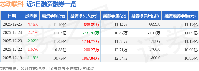 芯动联科融资融券信息显示,融资方面,当日融资买入1.38亿元,融资偿还1.31亿元,融资净买入698.89万元。融券方面,融券卖出7163.0股,融券偿还464.0股,融券余量11.14万股,融券余额738.78万元。融资融券余额11.17亿元。