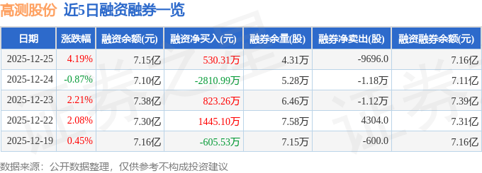 证券之星消息,截至2025年12月25日收盘,高测股份(688556)报收于11.94元,上涨4.19%,换手率4.26%,成交量35.4万手,成交额4.15亿元。