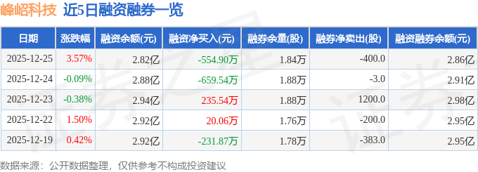 峰岹科技融资融券信息显示,融资方面,当日融资买入1275.15万元,融资偿还1830.05万元,融资净偿还554.9万元。融券方面,融券卖出0.0股,融券偿还400.0股,融券余量1.84万股,融券余额352.38万元。融资融券余额2.86亿元。