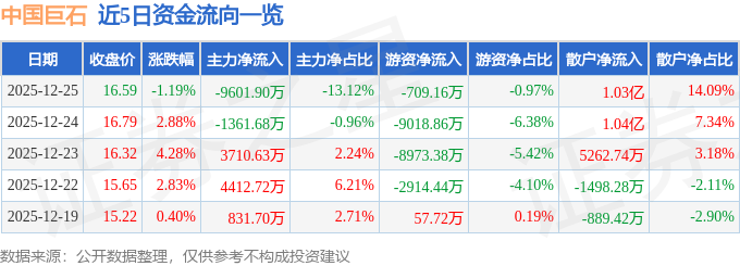 12月25日的资金流向数据方面,主力资金净流出9601.9万元,占总成交额13.12%,游资资金净流出709.16万元,占总成交额0.97%,散户资金净流入1.03亿元,占总成交额14.09%。