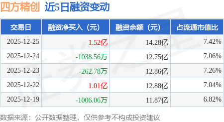 证券之星消息,12月25日,四方精创(300468)融资买入4.71亿元,融资偿还3.18亿元,融资净买入1.52亿元,融资余额14.28亿元,当日融资净买入排名第30。