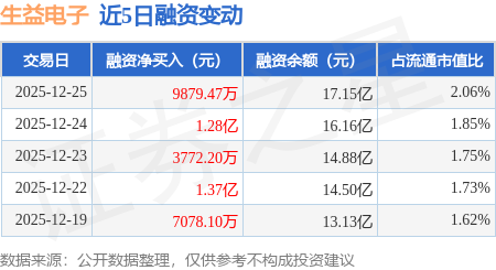 证券之星消息,12月25日,生益电子(688183)融资买入4.04亿元,融资偿还3.05亿元,融资净买入9879.47万元,融资余额17.15亿元,近3个交易日已连续净买入累计2.65亿元,近20个交易日中有12个交易日出现融资净买入。