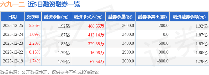 六九一二融资融券信息显示,融资方面,当日融资买入3540.51万元,融资偿还3051.96万元,融资净买入488.55万元,连续3日净买入累计1231.08万元。融券方面,融券卖出200.0股,融券偿还0.0股,融券余量3600.0股,融券余额45.64万元。融资融券余额1.92亿元。