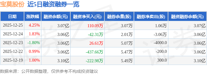 证券之星消息,截至2025年12月25日收盘,宝莫股份(002476)报收于6.38元,上涨4.25%,换手率4.87%,成交量29.78万手,成交额1.89亿元。