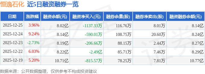证券之星消息,截至2025年12月25日收盘,恒逸石化(000703)报收于9.71元,上涨3.96%,换手率2.12%,成交量75.85万手,成交额7.23亿元。