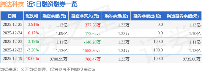 证券之星消息,截至2025年12月25日收盘,腾达科技(001379)报收于24.99元,上涨3.91%,换手率29.11%,成交量19.59万手,成交额4.82亿元。