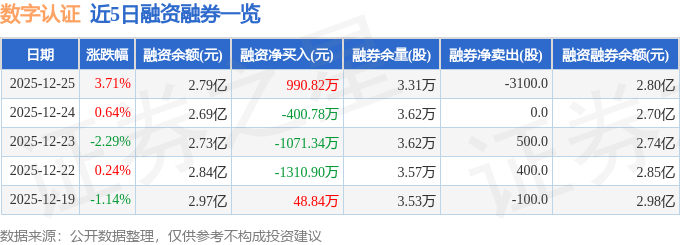 证券之星消息,截至2025年12月25日收盘,数字认证(300579)报收于29.38元,上涨3.71%,换手率2.35%,成交量6.15万手,成交额1.8亿元。