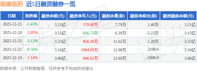 证券之星消息,截至2025年12月25日收盘,瑞康医药(002589)报收于3.44元,下跌1.43%,换手率5.83%,成交量79.62万手,成交额2.74亿元。