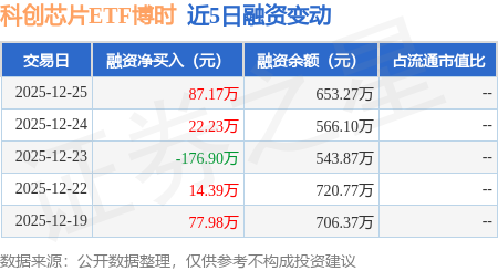 证券之星消息,12月25日,科创芯片ETF博时(588990)融资买入177.09万元,融资偿还89.92万元,融资净买入87.17万元,融资余额653.27万元,近20个交易日中有11个交易日出现融资净买入。