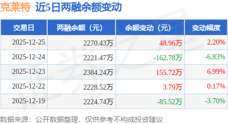 证券之星消息,12月25日,克莱特(920689)融资买入275.03万元,融资偿还226.07万元,融资净买入48.96万元,融资余额2270.43万元。