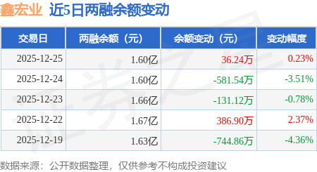 证券之星消息,12月25日,鑫宏业(301310)融资买入446.88万元,融资偿还411.52万元,融资净买入35.36万元,融资余额1.6亿元,近20个交易日中有11个交易日出现融资净买入。