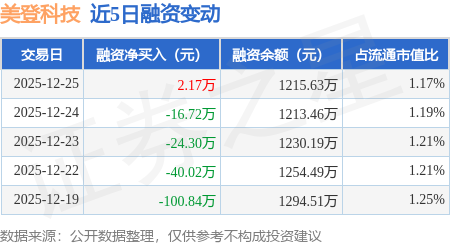 证券之星消息,12月25日,美登科技(920227)融资买入236.65万元,融资偿还234.48万元,融资净买入2.17万元,融资余额1215.63万元。