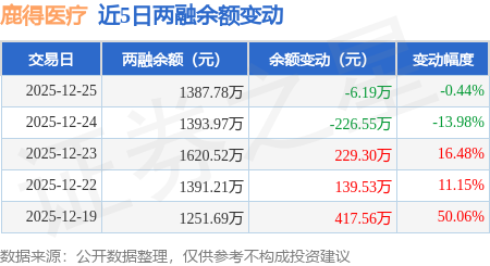 证券之星消息,12月25日,鹿得医疗(920278)融资买入417.14万元,融资偿还423.33万元,融资净卖出6.19万元,融资余额1387.78万元,近20个交易日中有11个交易日出现融资净买入。