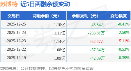 证券之星消息,12月25日,苏博特(603916)融资买入307.56万元,融资偿还351.45万元,融资净卖出43.89万元,融资余额1.1亿元。