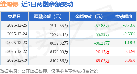 证券之星消息,12月25日,维海德(301318)融资买入196.55万元,融资偿还254.55万元,融资净卖出58.0万元,融资余额7901.14万元,近20个交易日中有12个交易日出现融资净买入。