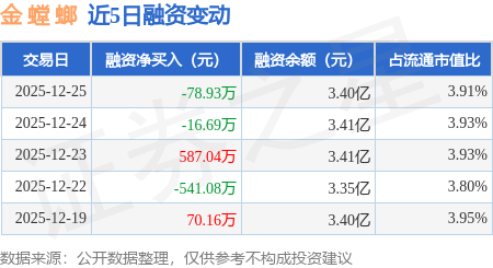 证券之星消息,12月25日,金 螳 螂(002081)融资买入723.52万元,融资偿还802.44万元,融资净卖出78.93万元,融资余额3.4亿元。