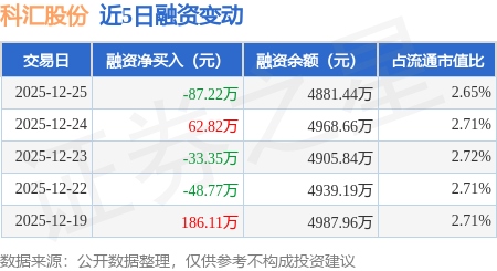 证券之星消息,12月25日,科汇股份(688681)融资买入116.84万元,融资偿还204.06万元,融资净卖出87.22万元,融资余额4881.44万元。
