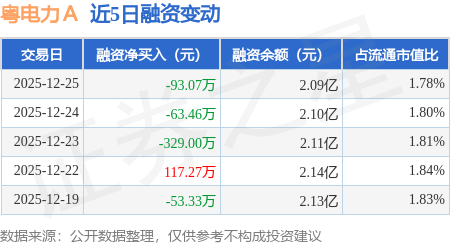 证券之星消息,12月25日,粤电力A(000539)融资买入463.27万元,融资偿还556.34万元,融资净卖出93.07万元,融资余额2.09亿元。